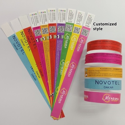Muñequeras de papel duraderas desechables personalizadas, entradas de escena de Castillo travieso a prueba de agua para parque infantil Paradise